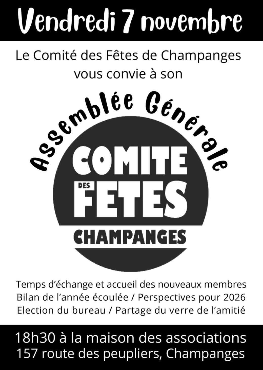 LE VENDREDI 7 NOVEMBRE à 18h30 à la maison des Associations 157 route des peupliers