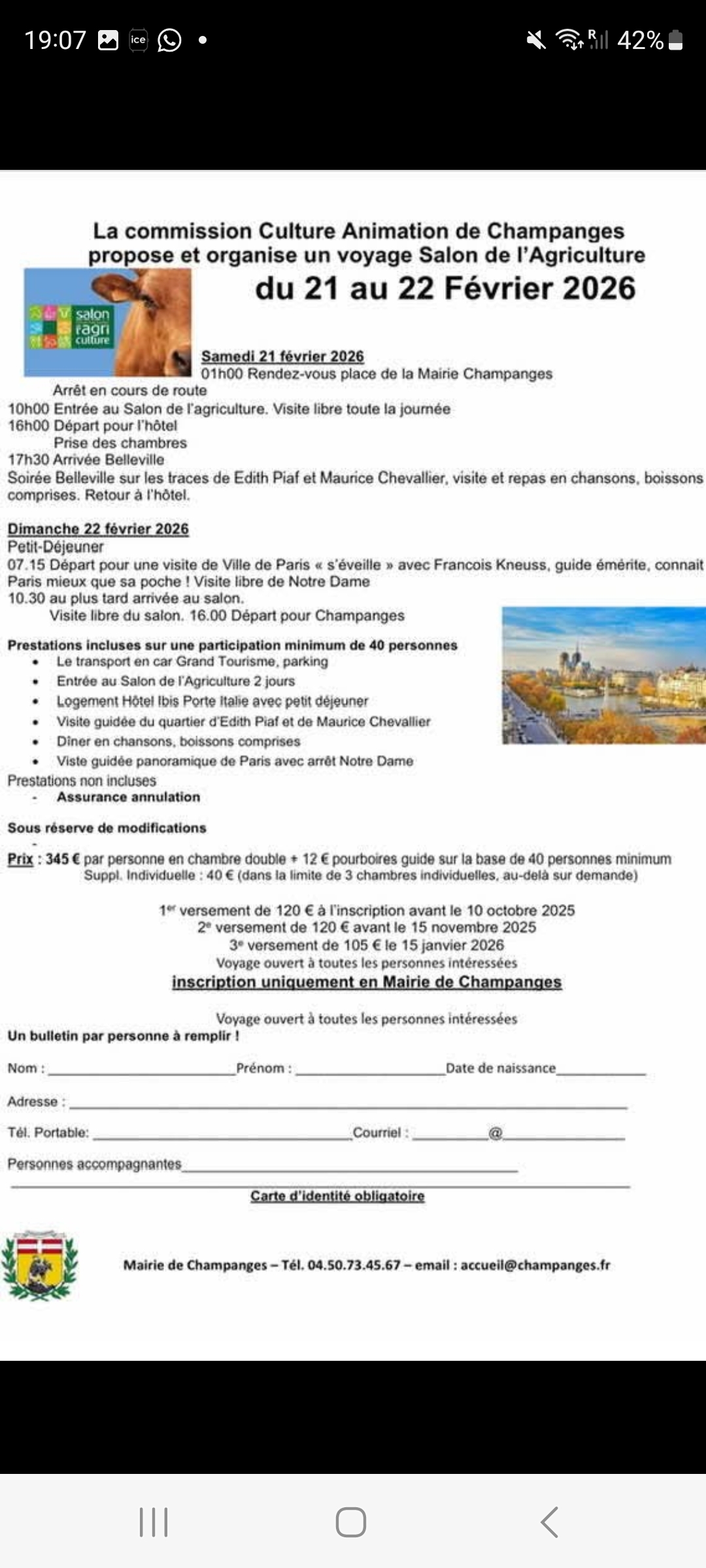 La commission Culture et Animation de la commune organise un VOYAGE au salon de l'agriculture le WEEK END du 21 au 22 FEVRIER 2026 .